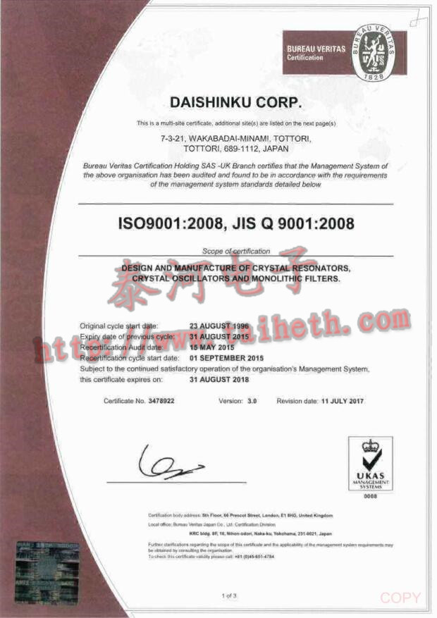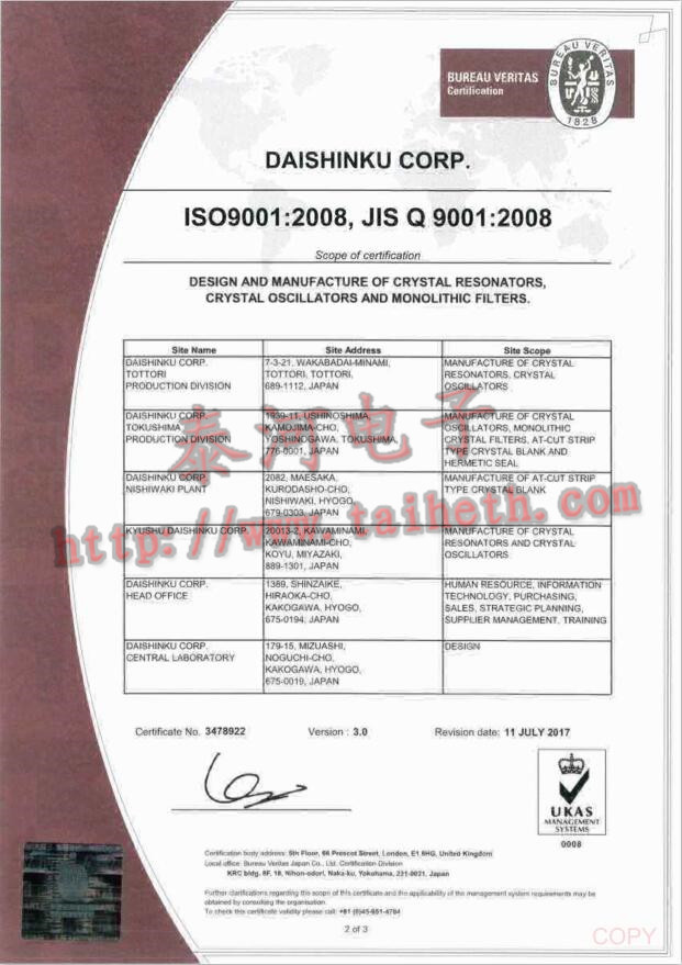 1980年開設鳥取工廠是目前鳥取事業部,由于對石英晶體諧振器的生產增加,鳥取工廠同年也開始生產石英晶體濾波器及時鐘晶振.