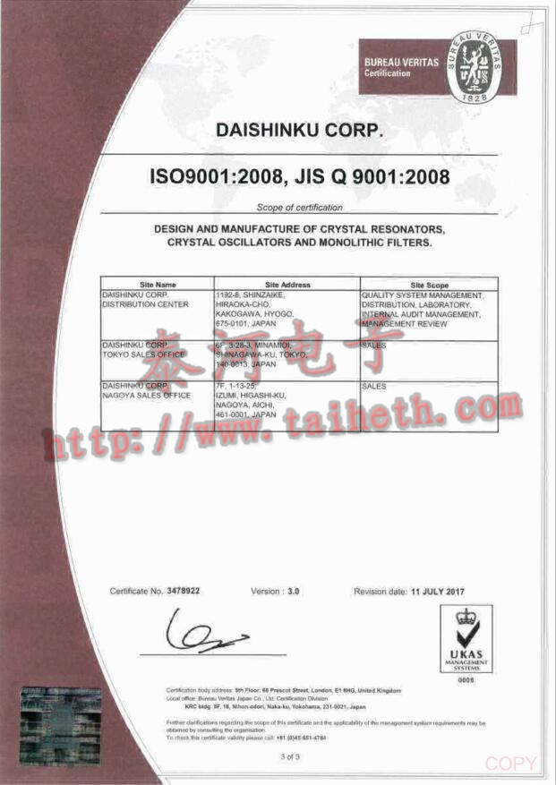 - [2023-06-21]臺灣加高晶振公司通過ISO 9001:...