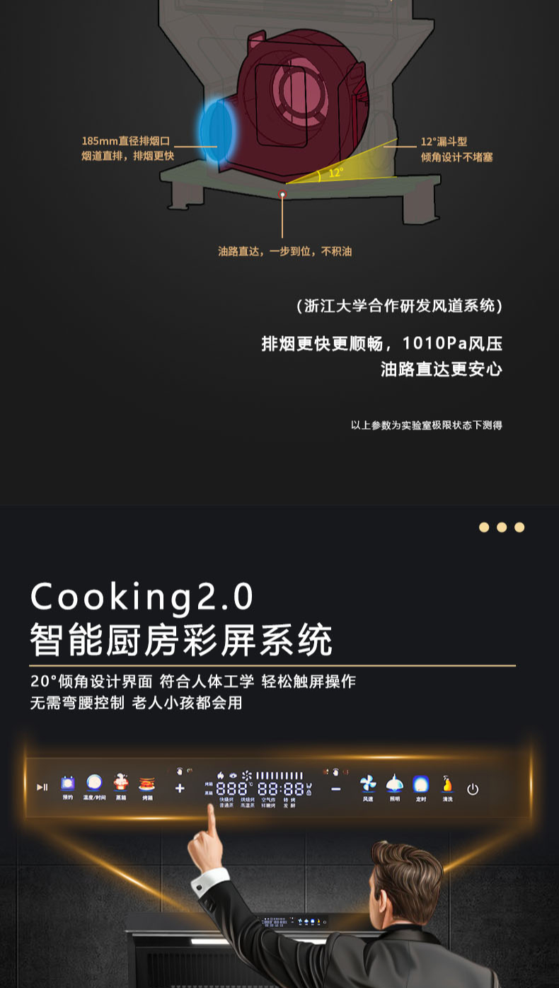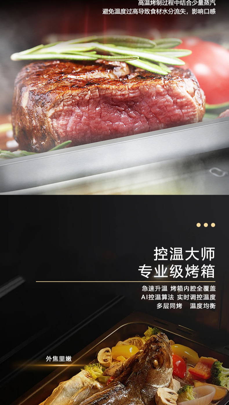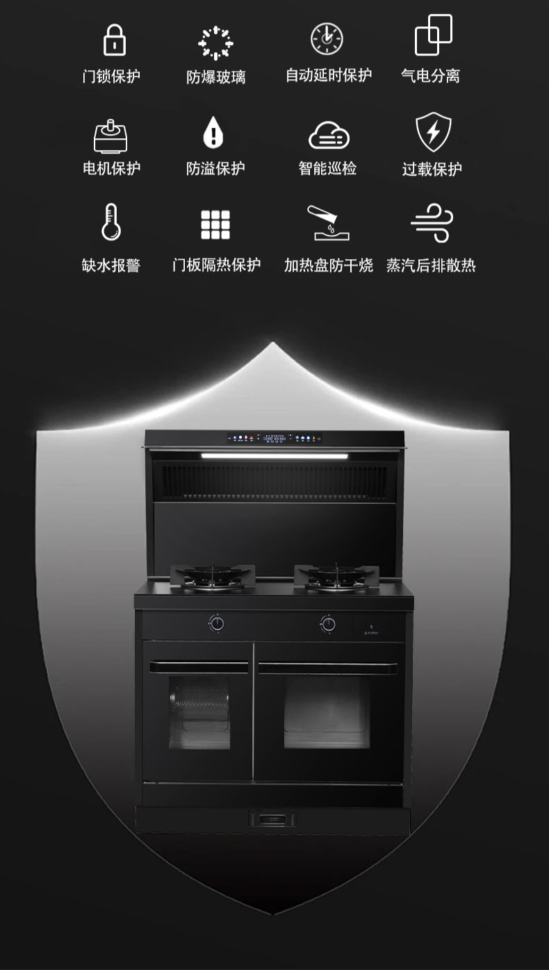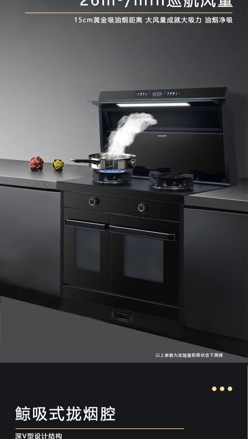 26m3每分巡航風(fēng)量,左烤右蒸烤,旋風(fēng)轉(zhuǎn)烤,智能彩屏,揮手感應(yīng),雙灶定時熄火
