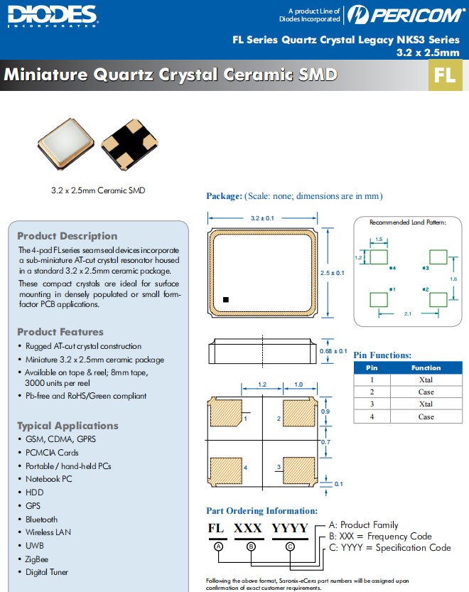 Diodes進口晶振,FL藍牙晶振,FL2500283Z四腳貼片晶振,FL4000205Z諧振器,筆記本電腦晶振